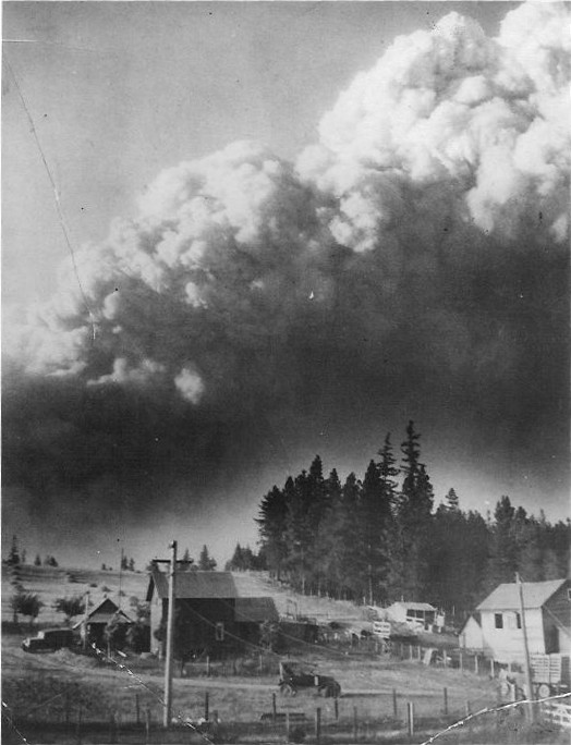 In August 1931 a forest fire possibly caused by lightning (or maybe, some said, by an overturned still) broke out at Freeman Lake and roared across the Peninsula north of Priest River at incredible speeds, whipped by wind. This worst natural disaster ever to befall the Priest River Valley claimed no lives but caused much damage to property. The Leonard Brown farm on the outskirts of Priest River was far enough away that it escaped the flames.